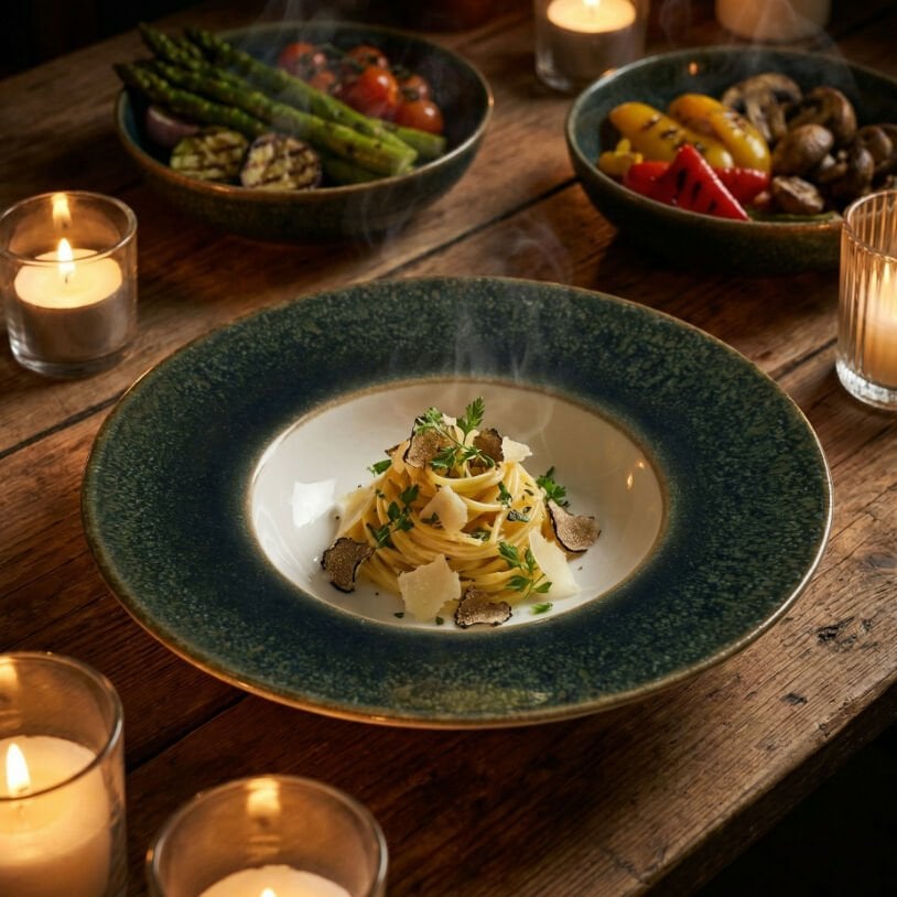 Bonna’nın yüksek kaliteli porseleni ile üretilen bu çukur tabak, 28 cm geniş çapı ve 400 cc hacmi sayesinde makarna, ana yemek, özel sunumlar ve fine dining servisler için idealdir. Banquet formu, geniş sunum alanı sunarken porsiyon kontrolünü de kolaylaştırır.