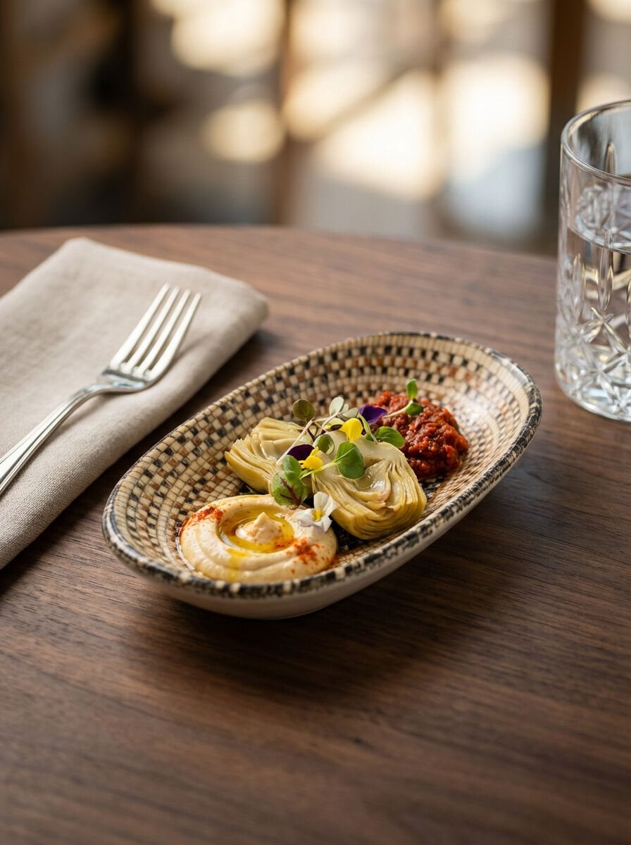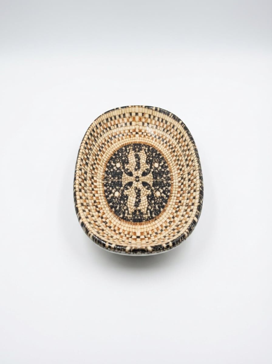 Özgün mozaik desenleri ve sıcak kahve tonlarıyla sunumlara karakter katan şık bir porselen üründür. Mezopotamya Mozaik Siyah Oval Kayık Tabak, meze, sos ve küçük porsiyonlu sunumlar için ideal ölçüsü sayesinde estetik ve dengeli bir kullanım sunar. Oval kayık formu ile Mezopotamya Mozaik Siyah Oval Kayık Tabak 19cm, sofralara modern ve dikkat çekici bir görünüm kazandırır.
